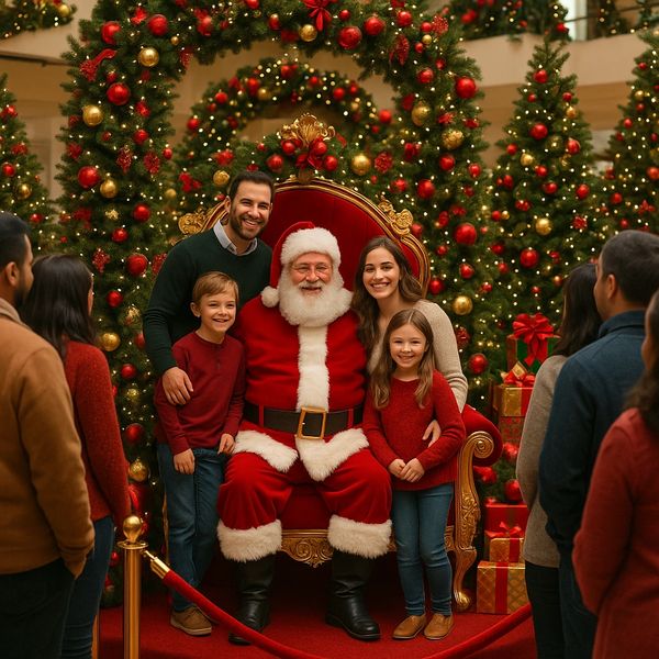 - Whether you’re visiting the mall, hosting a corporate Christmas party, or planning a community holiday event, our Santa photos are designed to deliver a joyful and stress-free experience. Families can enjoy a beautifully styled backdrop complete with Christmas trees, twinkling lights, and a friendly Santa seated on his grand throne. Kids and parents alike will love the festive atmosphere, while our expert team ensures every moment is captured in stunning detail.